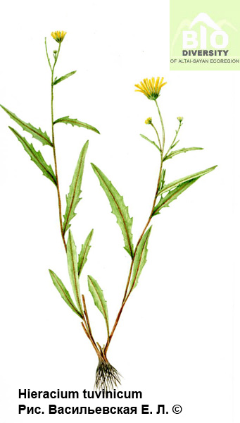Hieracium tuvinicum Krasnob. et Schaulo, 1984 в Бот. журн. 69,4:541. - Ястребинка тувинская.