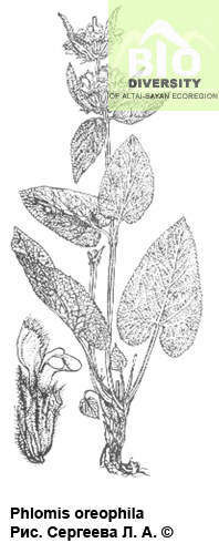 Phlomis oreophila Kar. et Kir. 1842 in Bull. Soc. Nat. Moscou 15: 426. - Зопник горнолюбивый.