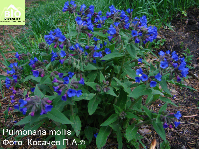 Pulmonaria mollis Wulfen ex Hornem. 1813 in Hort. Hafn. 1: 179 – Медуница мягенькая.