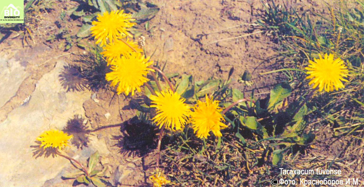 Taraxacum tuvense Krasnob. et Krasnikov, 1984, Бот. журн. 69, 4 : 537. – Одуванчик тувинский.
