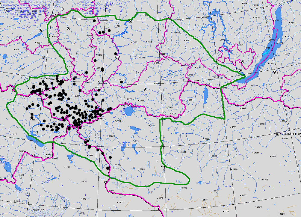 DISTRIBUTION Алт. кр., Красн. кр., Респ. Алт., Респ. Хакас., Респ. Тыва, Кем. обл., Вост. Каз., Зап. Монг., Сев-Зап. Кит. Общ. распр.: Ср. Азия.