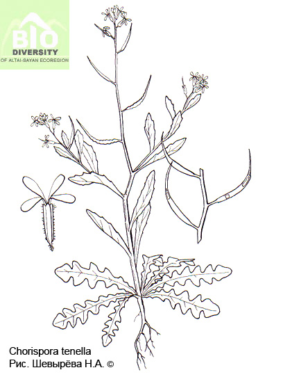 Chorispora tenella (Pall.) DC. 1821, Reg. Veg. Syst. Nat. 2 : 435. – Хориспора нежная.