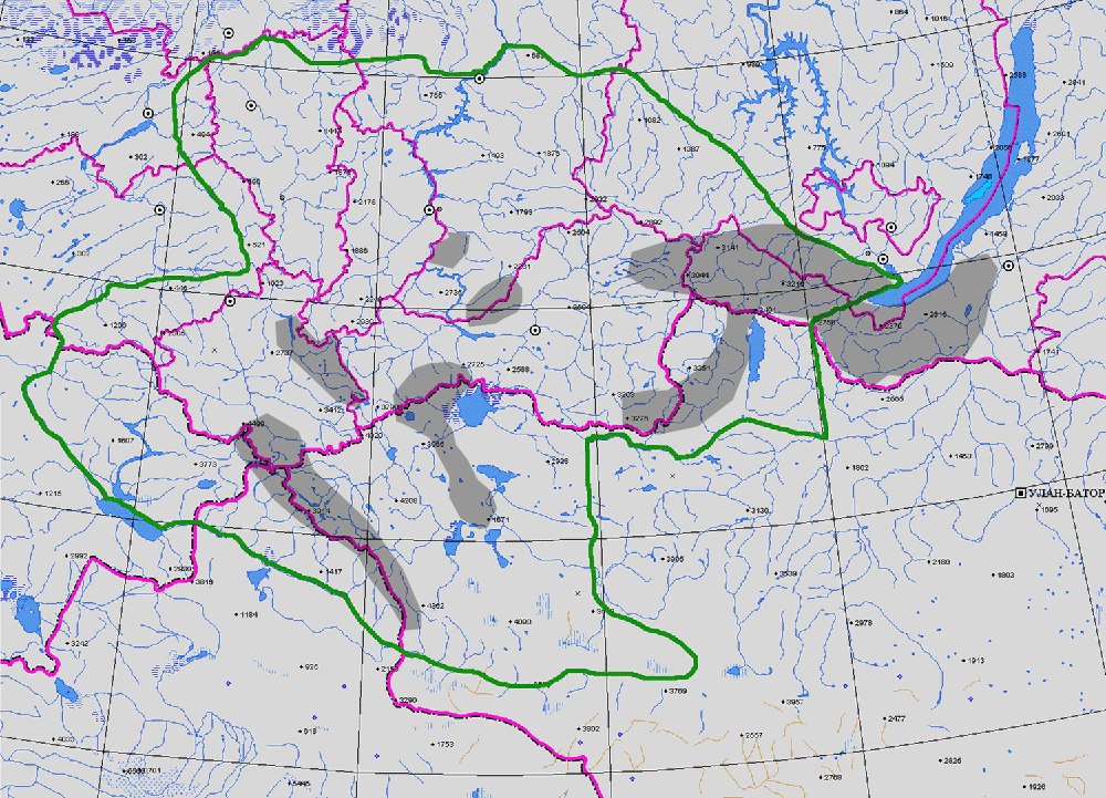 ГЕОГРАФ. АРЕАЛ: хр. Айгулакский, хр. Курайский, хр. Южно-Чуйский, хр. Куртушибинский, хр. Западный Танну-Ола, хр. Восточный Танну-Ола, хр. Цаган-Шибэту, хр. Монгольский Алтай, хр. Хангай, Казахстанский Алтай, Западный Саян; Тоджинская котловина, Котловина Больших Озёр; Чулышманское нагорье, нагорье Сангилен; долина р. Чуи (1-11).