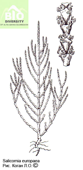 Salicornia europaea L. 1753, Sp. Pl.: 3. p. p. - Солерос европейский.