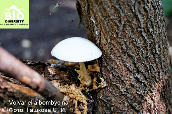 Volvariella bombycina (Schaeff.) Singer 1951 (1949, Lilloa 22: 401. - Вольвариелла шелковистая.