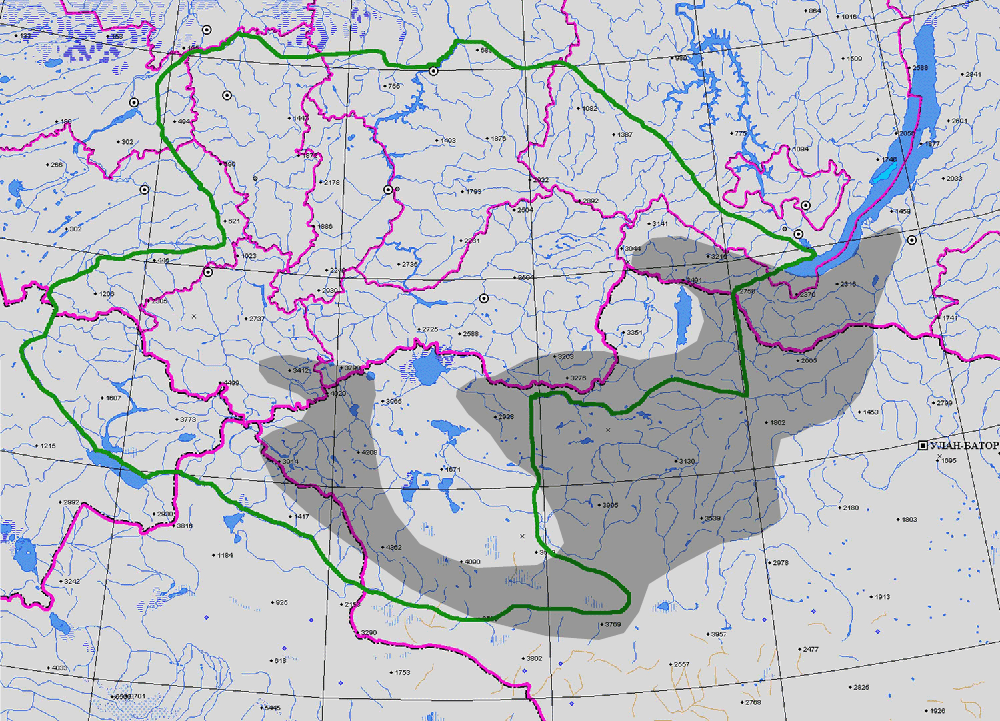 РАСПРОСТРАНЕНИЕ Респ. Алт., Респ. Тыва (1-2). Общ. распр.: Россия (Вост. Сиб.), Монг. (1).