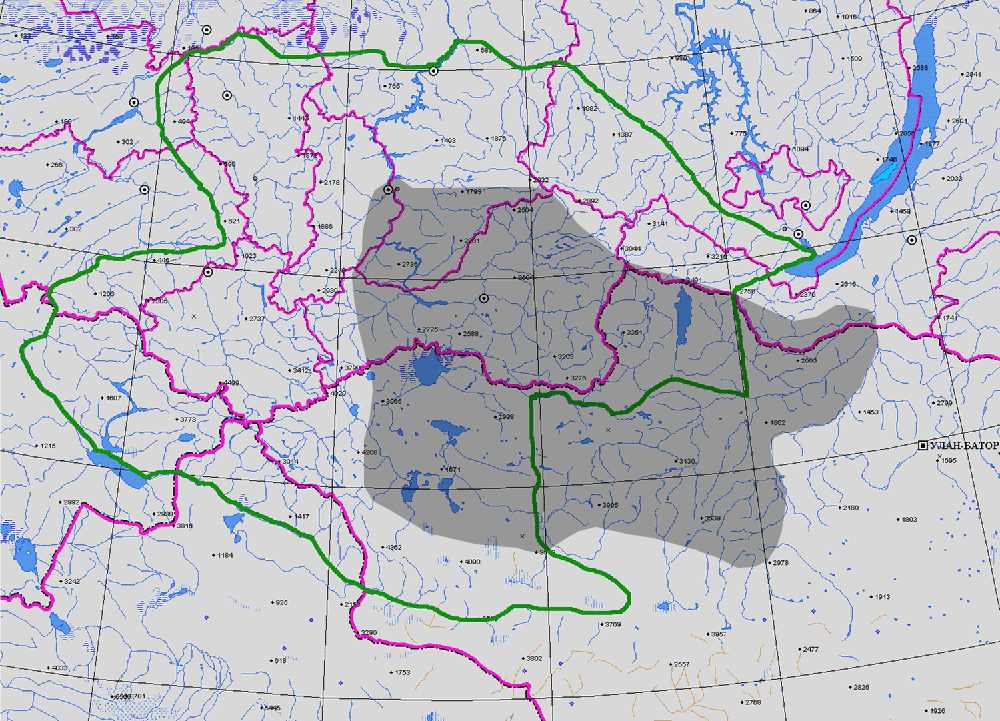 DISTRIBUTION Респ. Тыва, Красн. кр. (3).Общ. распр.: Россия (Вост. Сиб.), Монг. (2, 3).