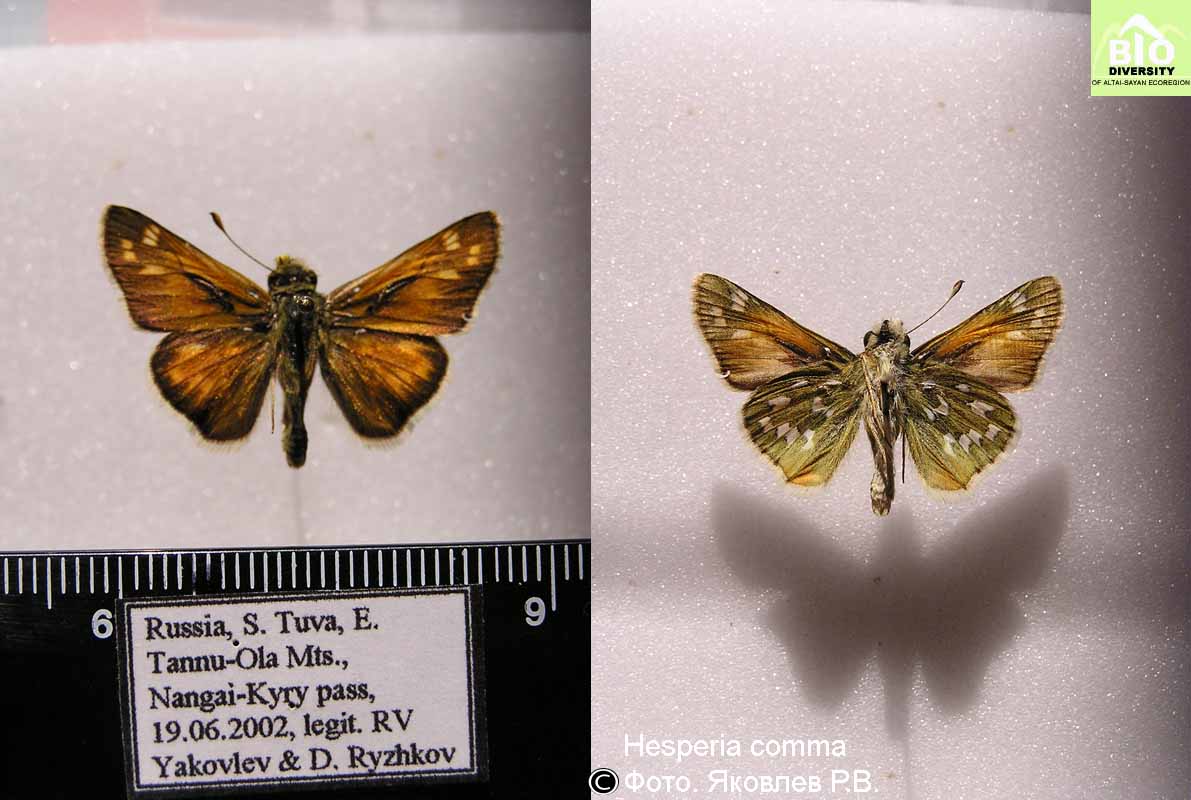 Hesperia comma (Linnaeus, 1758). “P.[apilio] P.[lebeji] Comma” – LINNAEUS, C. 1758. Systema Naturae Per Regna Tria Naturae, Secundum classes, ordines, genera, species, Cum characteribus, differentiis, synonymis, locis. Holmiae, Impensit Direct. Laurentii