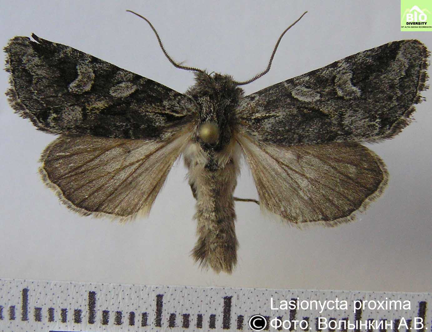Глаза с волосками, усики самцов четковидные. Голова и грудь от коричнево-серых до серых. Размах крыльев 34–35 мм. Фон переднего крыла от пепельно-серого до коричнево-серого или почти белого. Поперечные перевязи светлые, волнистые. Подкраевая линия светлая, ломаная. Подкраевое и базальное поля светлее срединного и краевого; подкраевое у костального края имеет темный мазок. Клиновидное пятно мелкое, бурое. Круглое пятно продолговатое, светлое. Почковидное пятно светлое. Бахромка пятнистая. заднее крыло коричневато-серое, у корня чуть осветлено. Бахромка серая.
