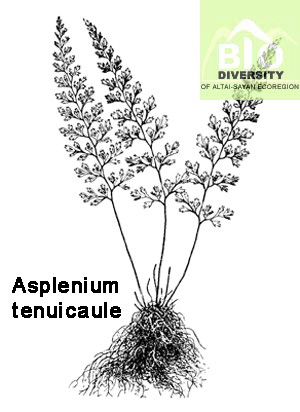 Asplenium tenuicaule Hayata, 1914, Icon. Pl. Formosan. 4 : 228–229, f. 158. - Костенец тонкостебельный.