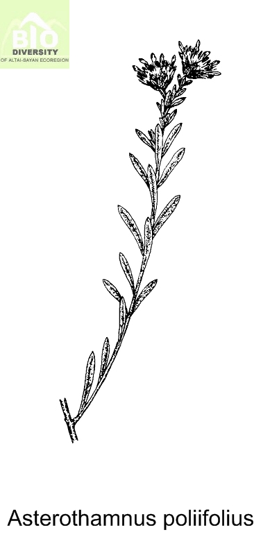 Asterothamnus poliifolius Novopokr., 1950 в Бот.мат. (Ленинград), 13 : 345. - Астеротамнус дубровниколистный.