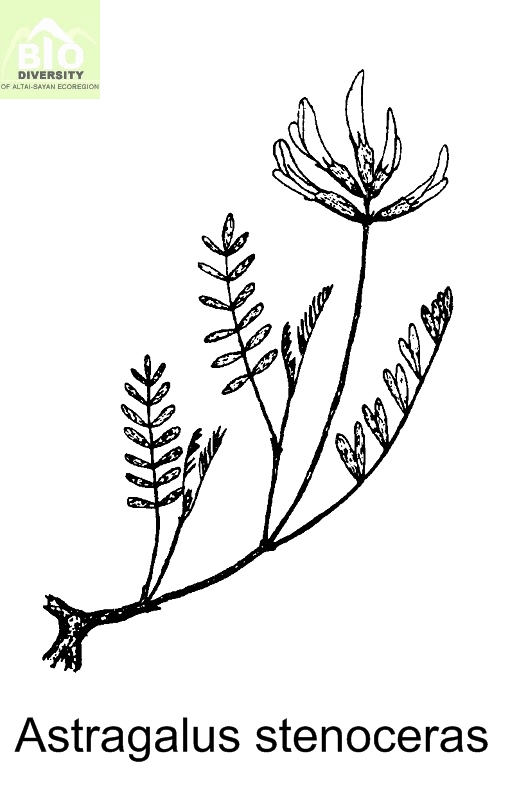 Astragalus stenoceras C.A. Mey. 1841, in Bong. et C.A. Mey. Verzeichniss Saisang-Nor u. Irtysch gesamm. Pflanz.[2 Suppl. Fl. Alt.]: 24 - Астрагал узкорогий