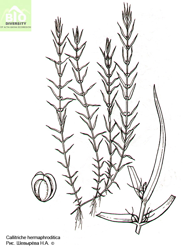 Callitriche hermaphroditica L. II. 1755, Cent. Pl. 1 : 31. - Болотник обоеполый.