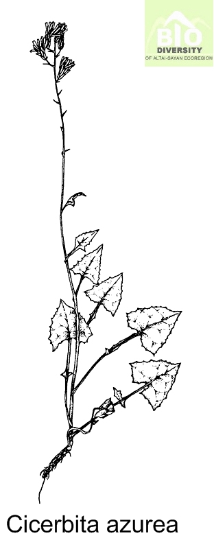 Cicerbita azurea (Ledeb.) Beauv. 1910, in Bull. Soc. Bot. Geneve, 2 ser. 2:123. - Цицербита лазоревая.