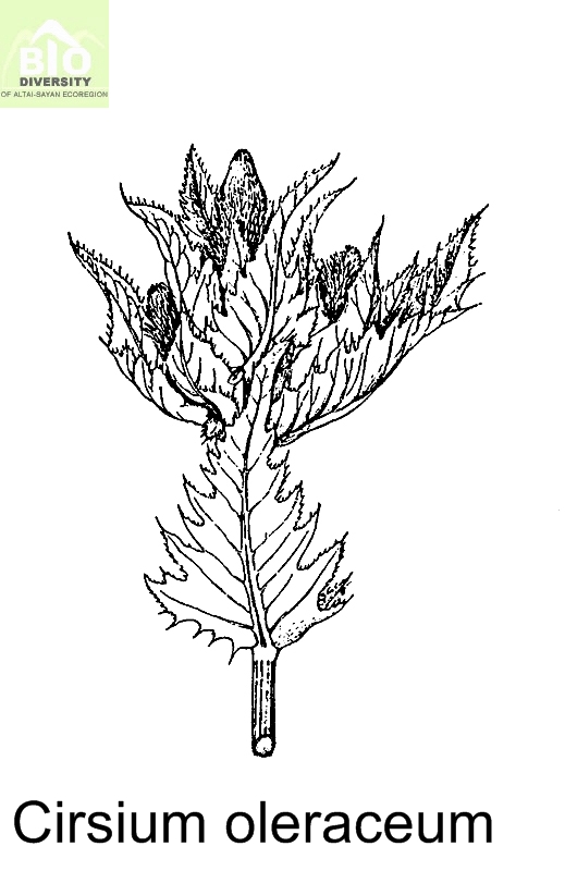 Многолетник 50-150 см выс. Корневище горизонтальное с корневыми мочками. Стебель прямой, ветвистый; стебель и листья голые или слабо опушенные. Нижние стеблевые листья крупные, до 20-40 см дл. и 10-30 см шир., суженные в крылатый черешок, перисто-надрезаные на яйцевидно-ланцетные долу с шиповидными ресничками по краю; средние листья перисторассеченные, сидячие, стебле-объемлющие; верхние - яйцевидные или продолговатые, крупно-зубчатые, заостренные. Корзинки 2-3 см диам., скучены по несколько на верхушках стебля и ветвей, окружены верхними бледно-желтоватыми яйцевидными листьями. Листочки обертки ланцетные, слабо паутинистые, с отогнутым шиповидным заострением; наружные реснитчатые, внутренние голые, лоснящиеся или иногда в верхней части коротковолосистые. Венчик зеленовато-желтый, отгиб надрезан на треть или чуть больше. Летучки грязно-белые (1).