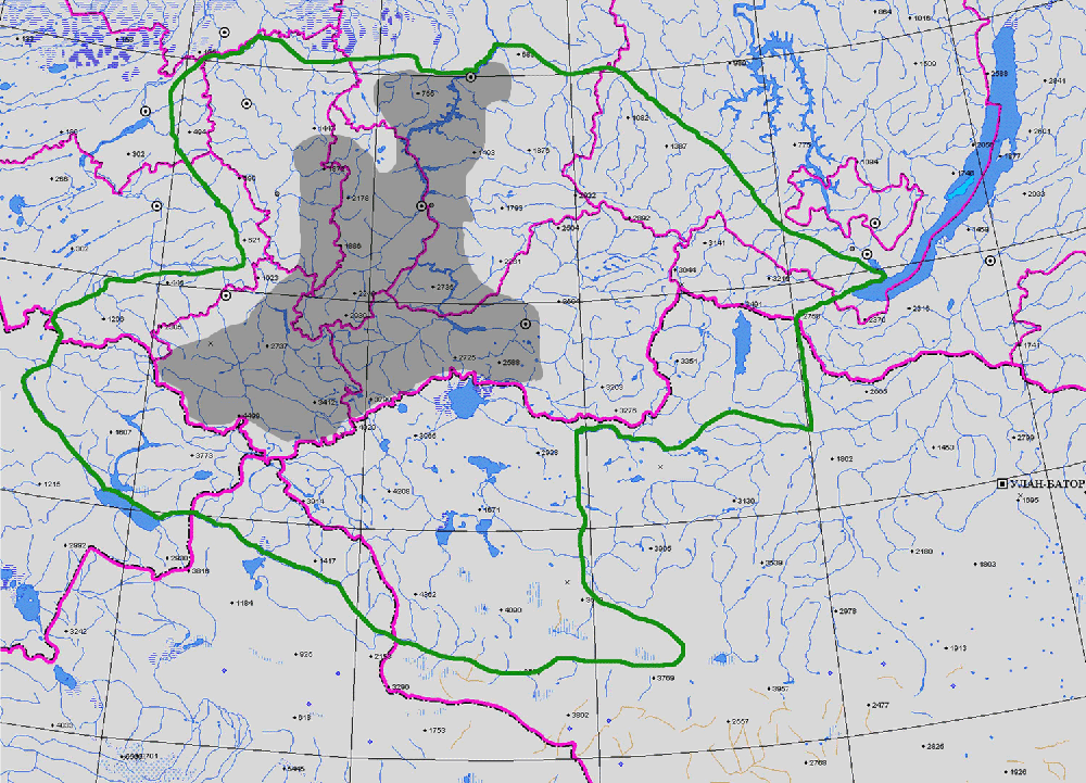 ГЕОГРАФ. АРЕАЛ: Алтай, Салаирский кряж (вост.), Кузнецкий Алатау, Зап. Саян, Хангай, Прихубсугулье, хр. Абаканский, хр. Зап. Тану-Ола, хр. Вост. Тану-Ола, хр. Академика Обручева, нагорье Сангилен, басс. Верхнего Енисея, Приенисейские степи, Батеневская лесостепь, Южн. Прибайкалье, котловина Тоджинская, котловина Тувинская, котловина Зайсанская (южн. отроги Курчумского хр.).