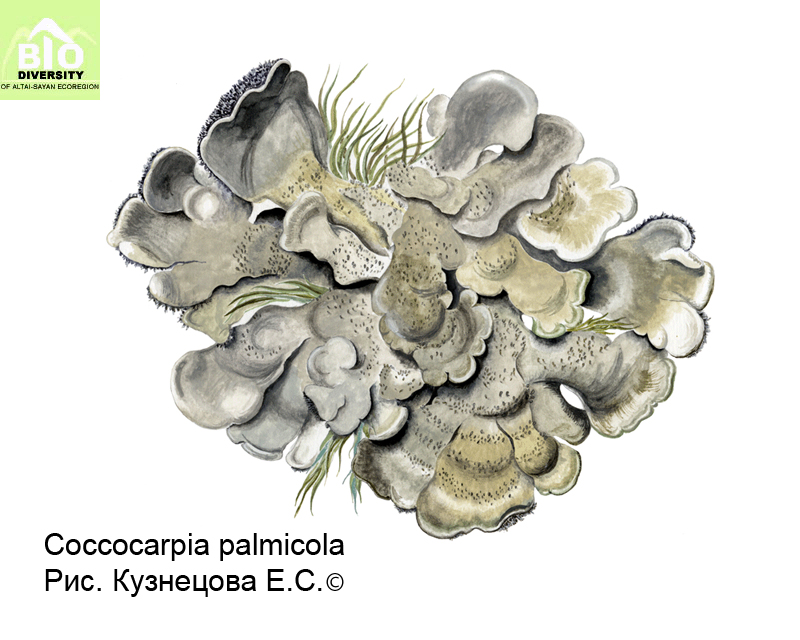 Coccocarpia palmicola (Spreng.) Arv. et D. Galloway 1982, Opera Bot., № 67: 1-96. – Коккокарпия пальмовая.
