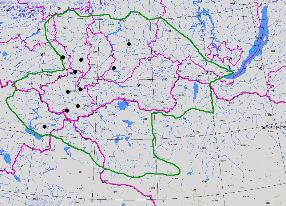 ГЕОГРАФ. АРЕАЛ: Хребты Горной Шории, хр. Саянский, хр. Кулумысский, хр. Семинский, хр. Алтынту, хр. Холзун, хр. Катунский, хр. Северо-Чуйский, Зап.-Саянский перевал, Салаирский кряж.