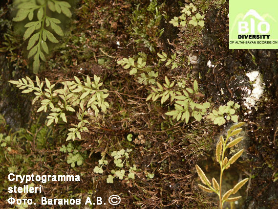 Сryptogramma stelleri (S.G. Gmel.) Prantl, 1882, Bot. Jahrb. 3 : 413. - Скрытокучница Стеллера.