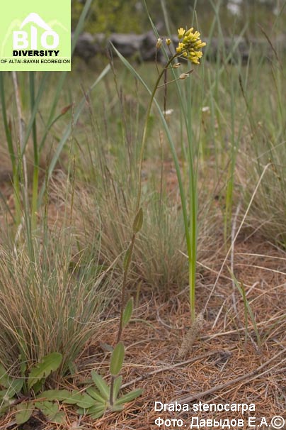 Draba stenocarpa Hook. fil. et Thoms. 1861, Journ. Proc. Linn. Soc. Bot. 5 : 153. – Крупка узкоплодная.