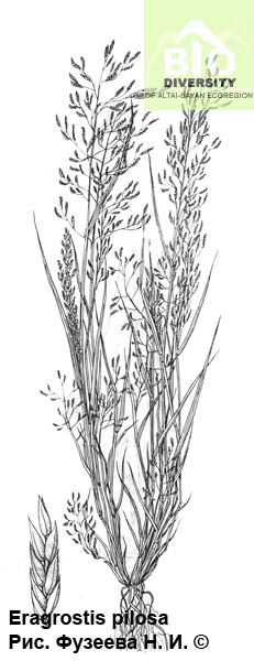 Eragrostis pilosa (L.) Beauv. 1812, Ess. Agrost.: 162. - Полевичка волосистая.