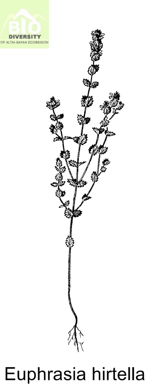 Euphrasia hirtella Jord. ex Reut. 1856, in Compte-Rendu Soc. Hallér. 4 : 120. - Очанка мохнатая.