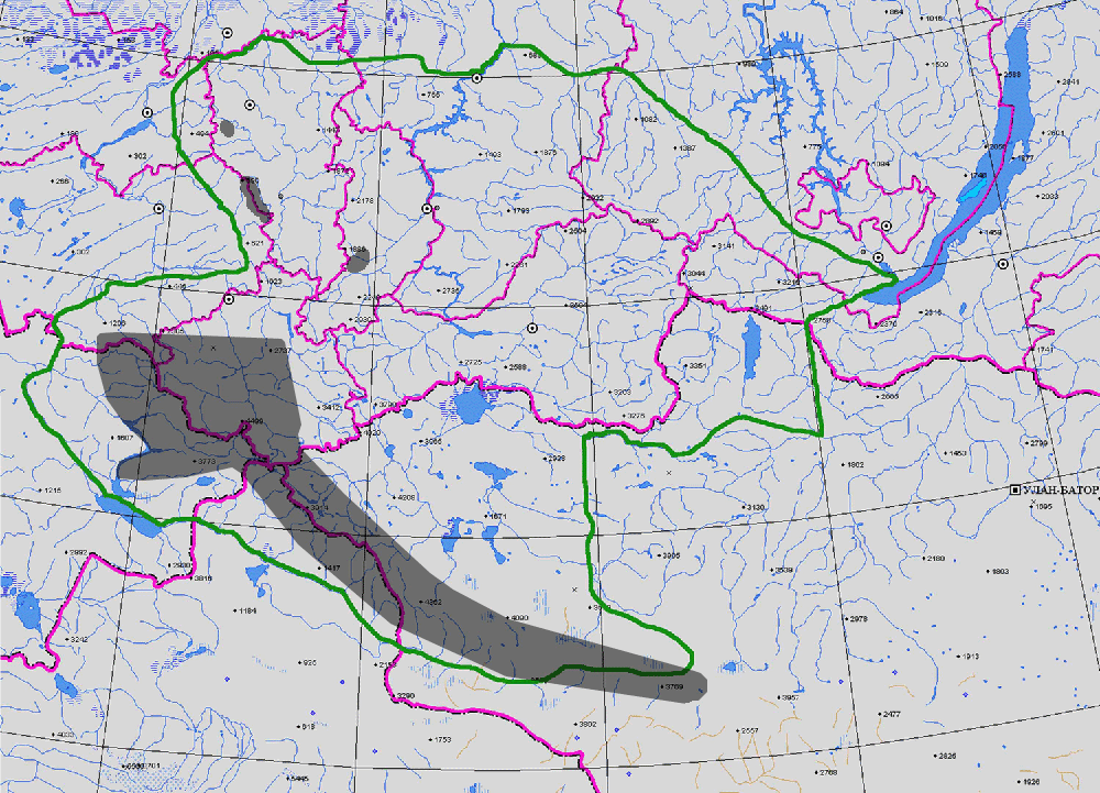 ГЕОГРАФ. АРЕАЛ: пл. Укок, Чуйская степь, Кузнецкая котловина, хр. Тарбагатай, Нарымский, хр. Сарымсакты, Тигирецкий хр., Чулышманский хр., Айгулакский хр., Коргонский хр., Теректинский хр., Чуйские белки, Курайский хр., Катунский хр., Семинский хр., Абаканский хр., хр. Баян-Аул.