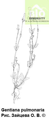Gentiana pulmonaria Turcz. ex Ledeb. 1847, Fl. Ross. 3, 1 : 55. – Горечавка распухлая.
