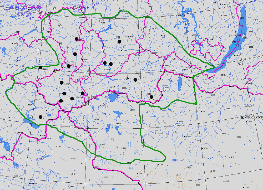 ГЕОГРАФ. АРЕАЛ: Хр. Саянский, хр. Кулумысский, хр. Ойский, хр. Алтынту, хр. Холзун, хр. Семинский, хр. Северо-Чуйский, хр. Айгулакский, хр. Теректинский, хр. Тигирекский, хребты Горной Шории и Кузнецкого Алатау, хр. Тумат-Тайга, нагорье Сангилен.
