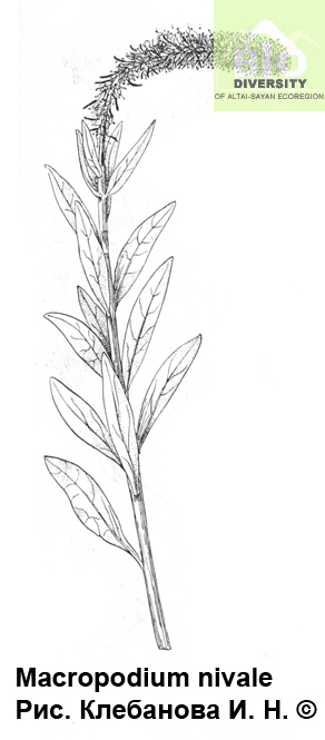 Macropodium nivale (Pall.) R. Br. 1812, in Aiton, Hort. Kew. ed. 2, 4 : 108. – Долгоног снеговой.