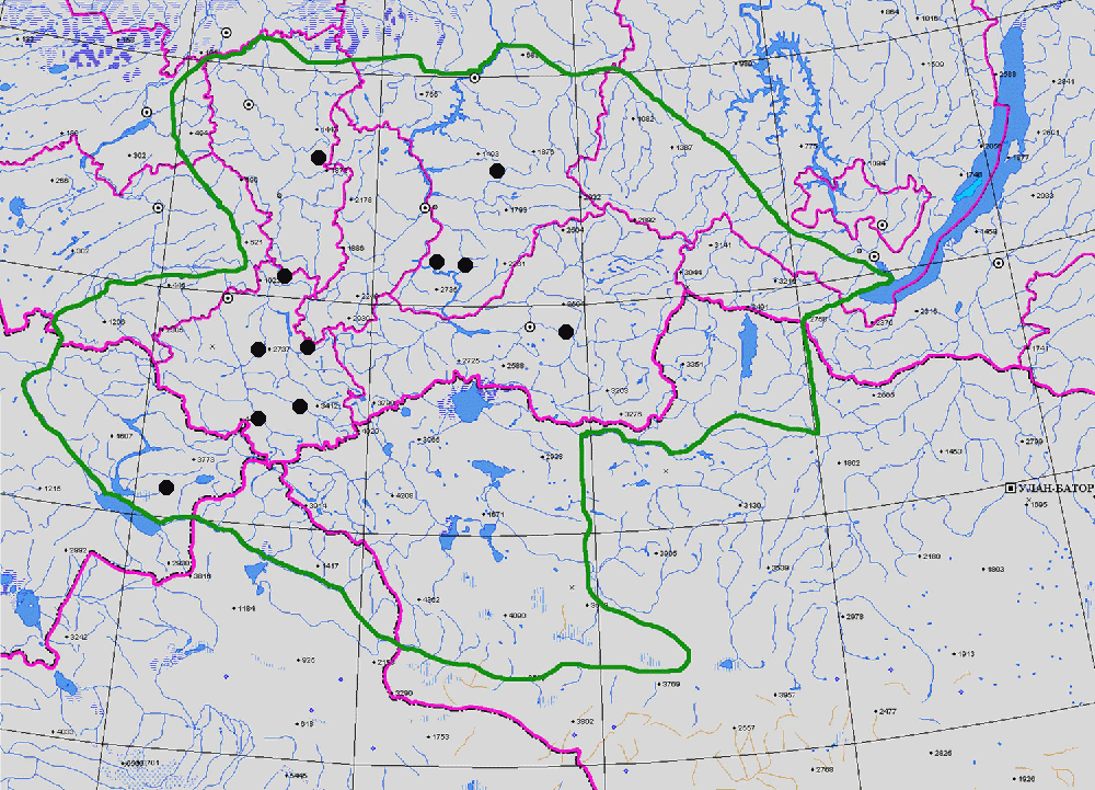 ГЕОГРАФ. АРЕАЛ: Хр. Саянский, хр. Кулумысский, хр. Ойский, хребты Кузнецкого Алатау, хр. Алтынту, хр. Холзун, хр. Семинский перевал, хр. Ак. Обручева.
