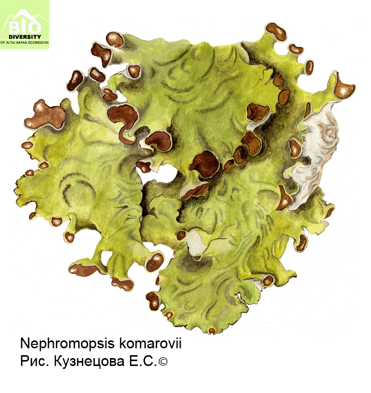 Nephromopsis komarovii (Elenk.) Wei 1991, Enumer. Lich. China: 158. – Нефромопсис Комарова.