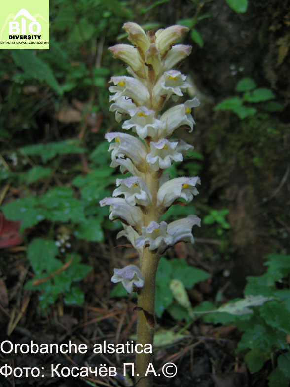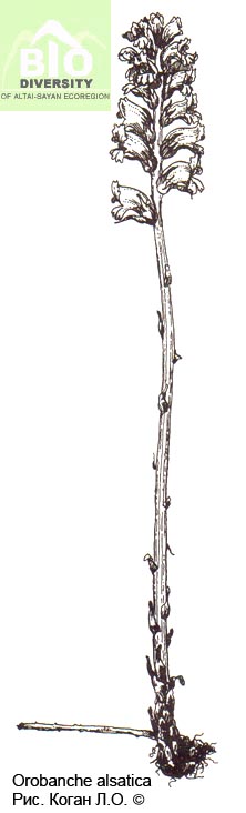 Orobanche alsatica Kirschl. 1836, Prodr. Fl. Alsace : 109. – Заразиха эльзасская.