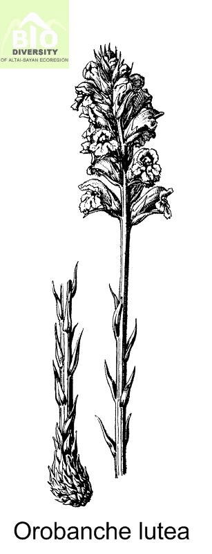 Orobanche lutea Baumg. 1816, Enum. Stirp. Transs. 2 : 215. – Заразиха люцерновая.