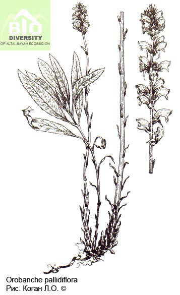 Orobanche pallidiflora Wimm. et Grab. 1829, Fl. Siles. 2, 1 : 233. – Заразиха бледноцветковая.