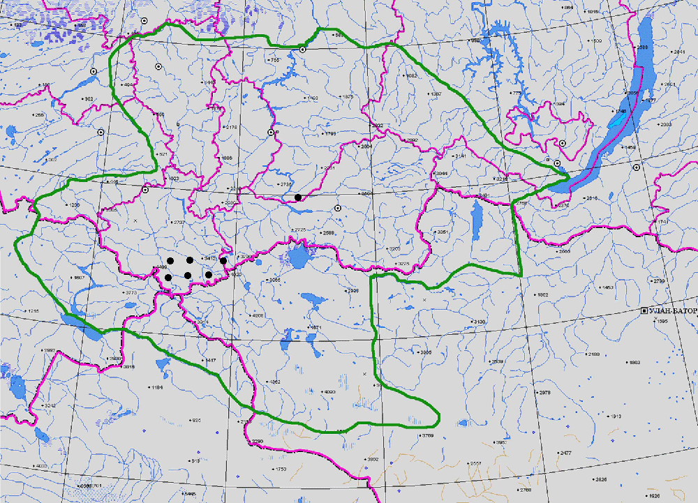 РАСПРОСТРАНЕНИЕ Респ. Тыва, Респ. Алт., Иркут. обл., Респ. Бур., Сев. Монг. Общ. распр.: Россия (Зап. и Вост. Сиб.), Монг., Центр. Азия.