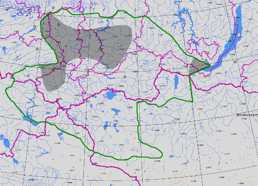 ГЕОГРАФ. АРЕАЛ: в верхов. р. Эликманара около оз. Каракола, в бас. р. Лебеди по ее притоку Чуе, в дол. р. Уйменя, в низов. Чулышмана около уст. р. Башкауса, в дол. Черного Иртыша, хр. Теректинский окр. д. Тюнгур.