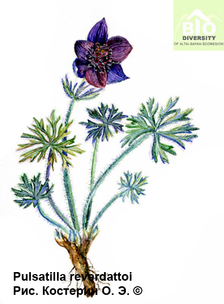 Pulsatilla reverdattoi Polozhij et Maltzeva, 1974, Сист. зам. Герб. Том. ун-та, 85: 16 - Прострел Ревердатто