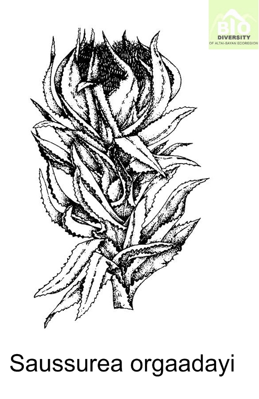 Saussurea orgaadayi V. Khan. et Krasnob. 1984, Изв. СО АН СССР, сер. биол. наук, 2, 13 : 14 – Соссюрея (горькуша) оргаадай.