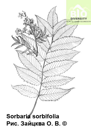 Sorbaria sorbifolia (L.) A. Br. 1864 in Ascherson Fl. Prov. Brandenb. 1: 177. - Рябинник рябинолистный.