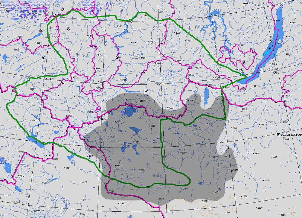 ГЕОГРАФ. АРЕАЛ: Хр. Западный Танну-Ола, хр. Восточный Танну-Ола, хр. Алашский, котловина Минусинская, нагорье Сангилен, Кузнецкий Алатау, Хакасские степи, Западный Саян, Восточный Саян, горы Прихубсугулья, Монгольский Алтай (1–5).