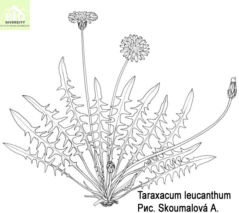 Taraxacum leucanthum (Ledeb.) Ledeb. 1846, Fl. Ross. II, 2 : 815. – Одуванчик белоцветковый.