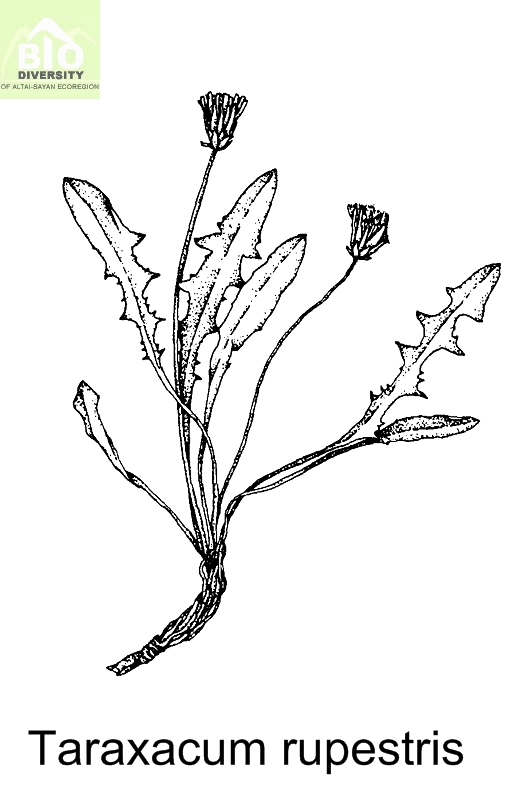 Taraxacum rupestre Krasnikov, 1997, во Фл. Сиб. 13 : 291. – Одуванчик скальный.