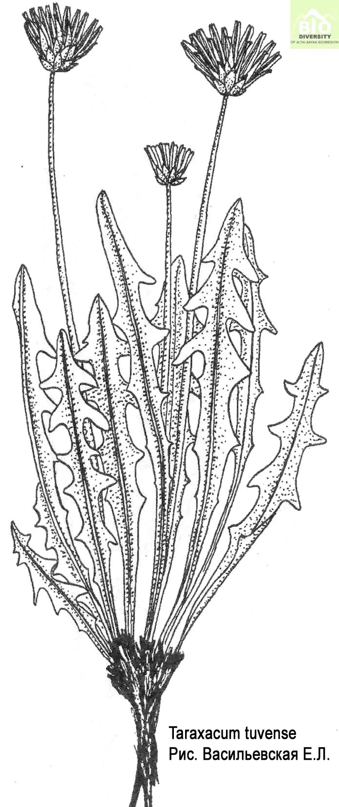 Taraxacum tuvense Krasnob. et Krasnikov, 1984, Бот. журн. 69, 4 : 537. – Одуванчик тувинский.