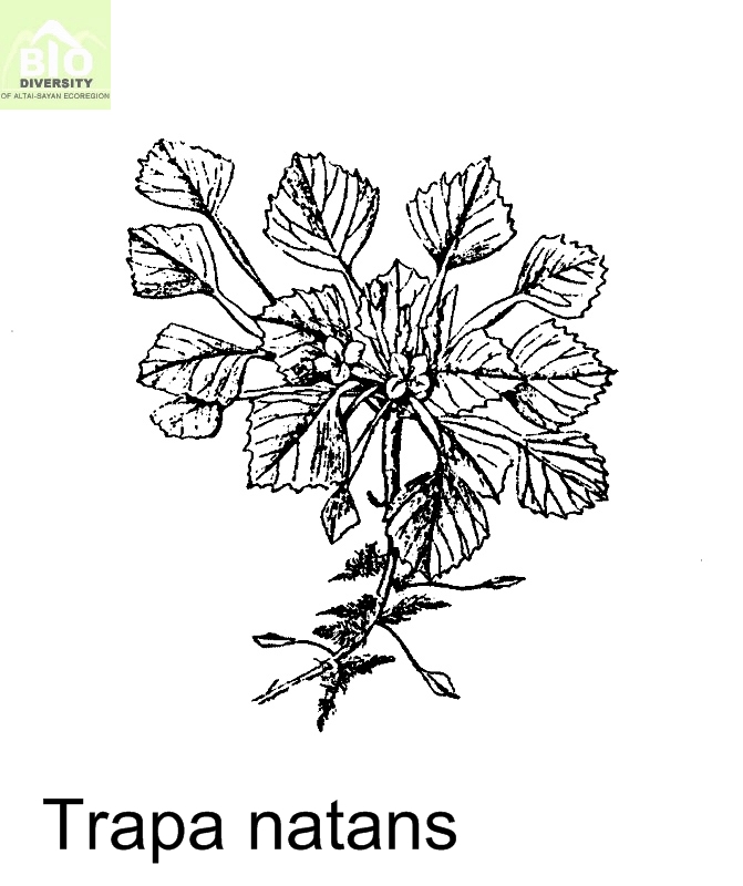 Trapa natans L. s. l. 1753, Sp. Pl.: 120. - Рогульник, водяной орех.