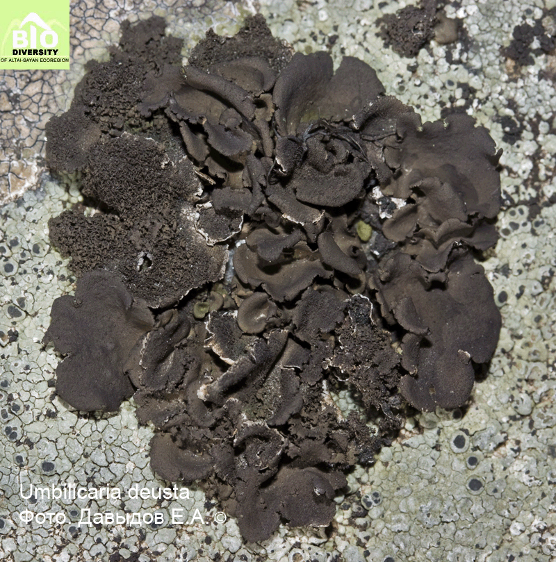 Umbilicaria deusta (L.) Baumg. 1790, Flora Lipsiensis: 571. - Умбиликария обугленная.