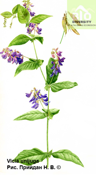 Vicia unijuga A. Braun, 1854, Index Sem. Hort. Berol. App.: 12 - Горошек однопарный, вика однопарная.