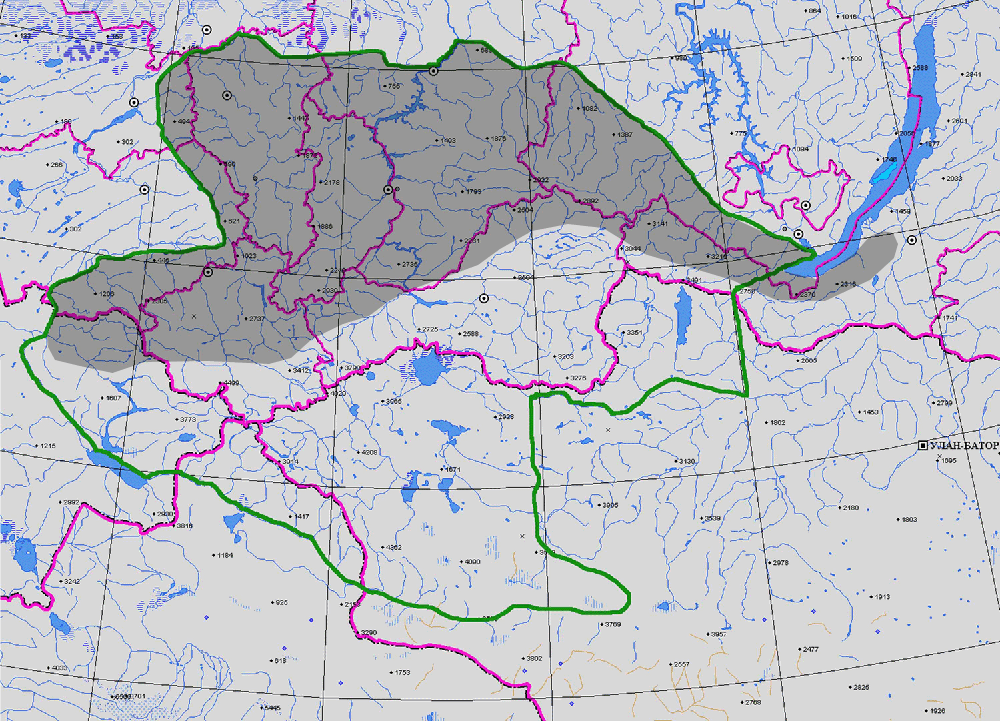 ГЕОГРАФ. АРЕАЛ: Хр. Колыванский, хр. Иолго, котловина Минусинская (1-3).
