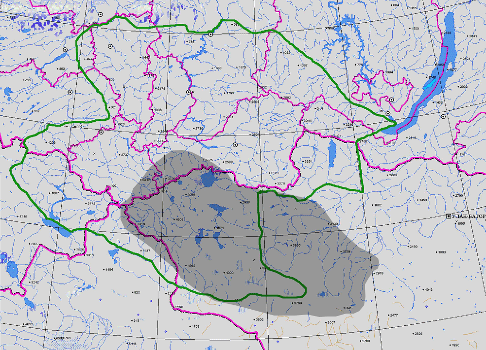 РАСПРОСТРАНЕНИЕ Респ. Алт., Респ. Тыва, Зап. Монг. (1, 2, 3), Общ. распр.: Сев. Монг., Вост. Сиб. (1)