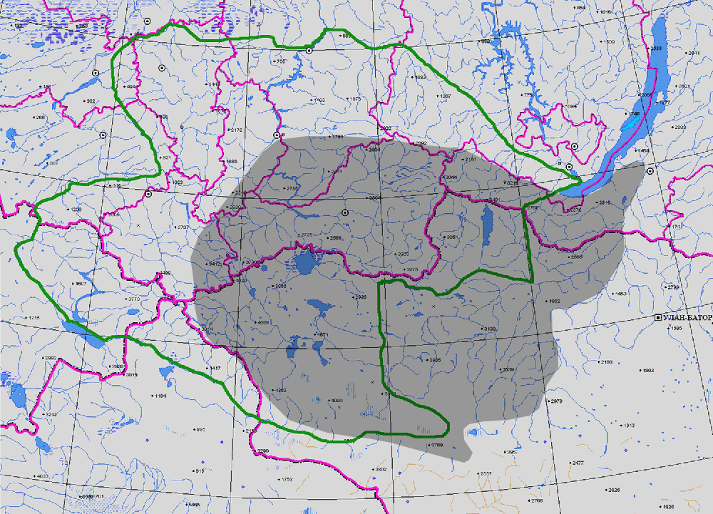 ГЕОГРАФ. АРЕАЛ: Котловина Минусинская, Саяны (1, 2).